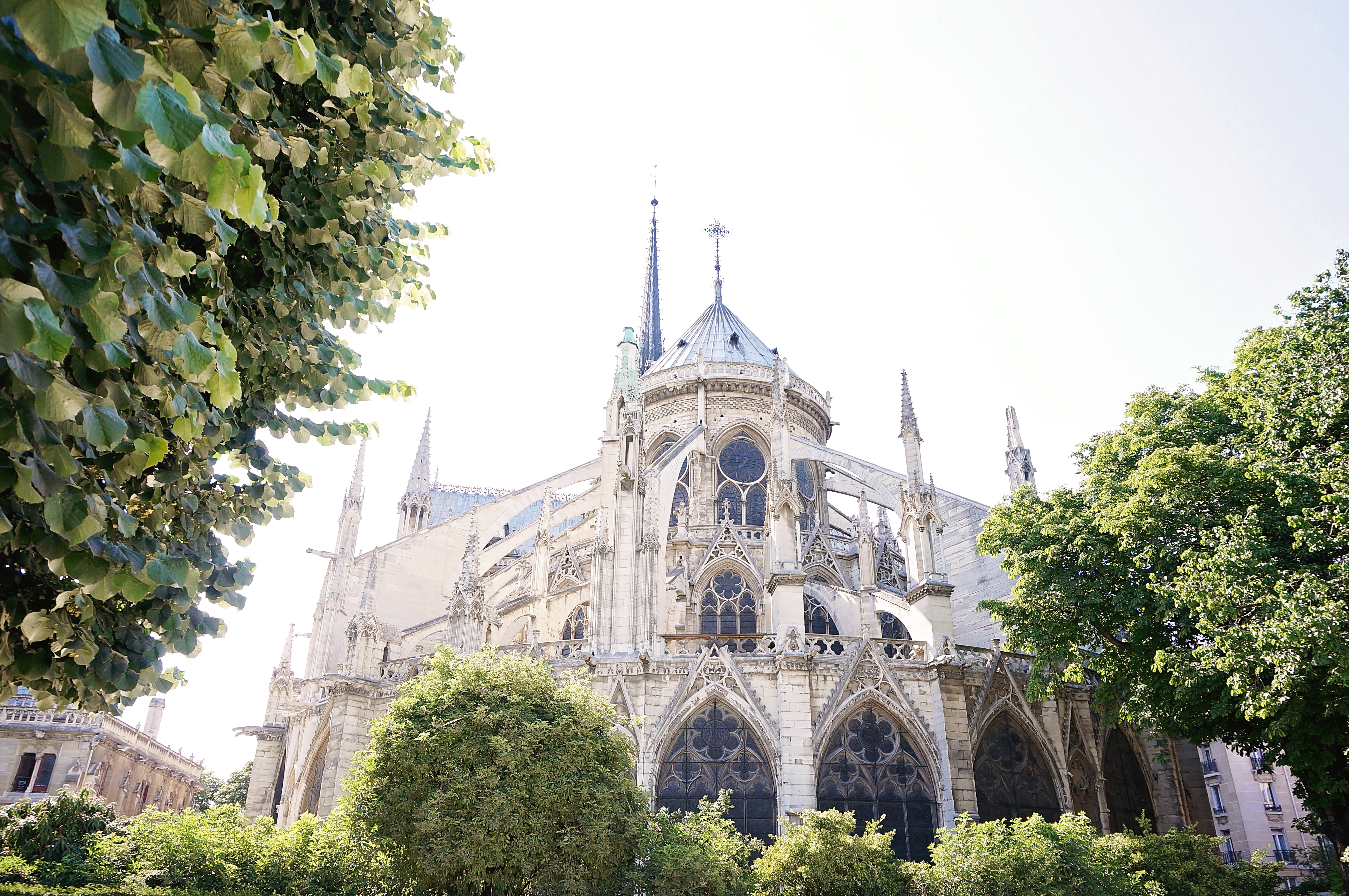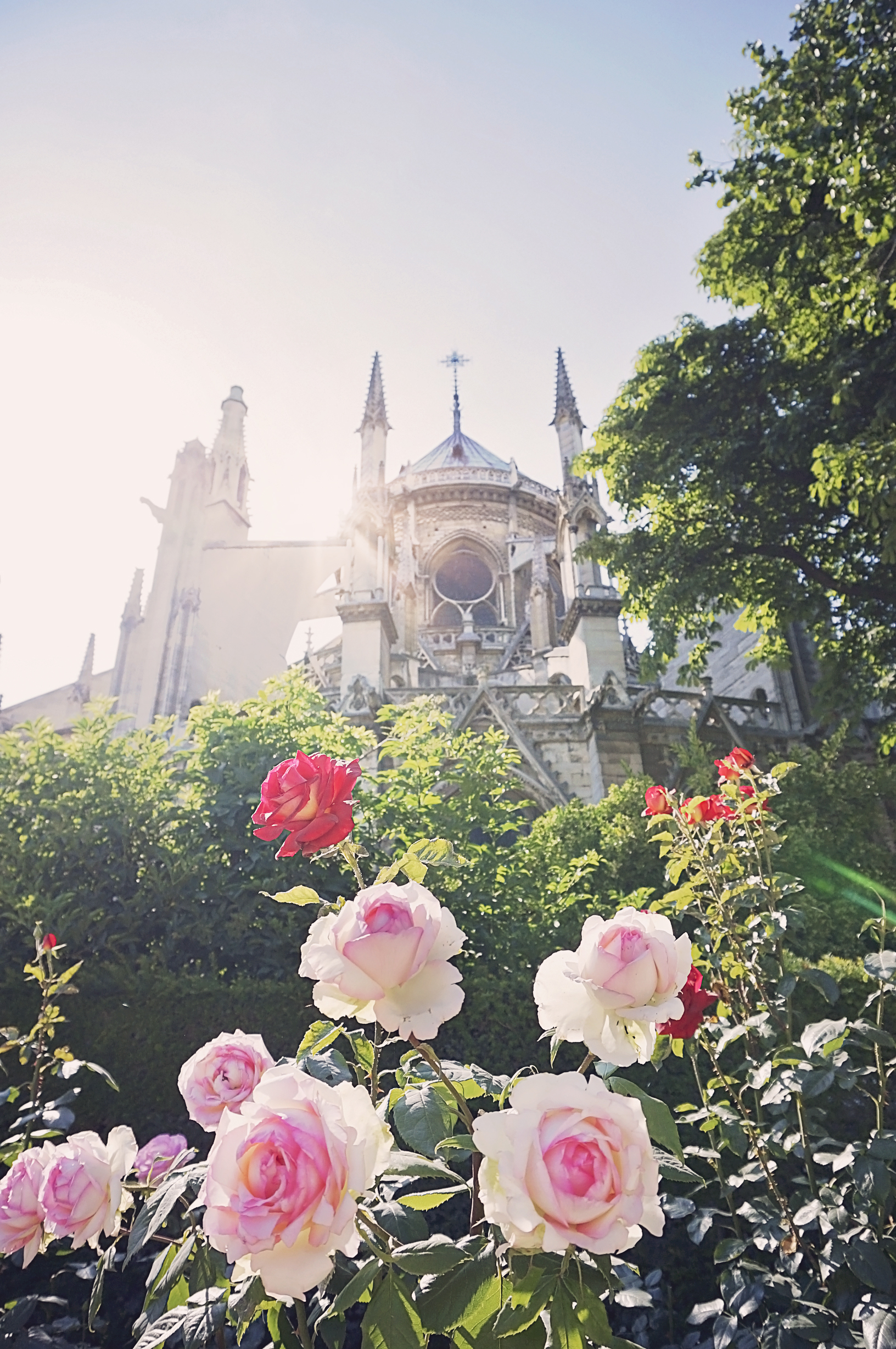 We spent the morning of our second day in Paris sleeping in so we could be well rested as to better enjoy ourselves. Our first stop was Île de la Cité to visit Notre Dame. From a distant I was wowed but it wasn’t until I got up close and personal with Notre Dame Cathedral that I was truly impressed. Ive been to a lot of cathedrals and churches in my travels but this one is probably my second favorite. My very favorite is Saint Chapelle, which we plan on visiting another day. If you’ve never visited the cathedral before then it is definitely worthwhile to join the throngs of people in the seemly never ending line, but we were lucky enough to have visit Paris in the winter a few years back when there was no line so we decided against it this time. We did walk around to the back of Notre Dame to the Square Jean XXlll where there were plenty of benches and few crowds so you could really sit and appreciate the cathedral and its flying buttresses. I got some of my favorite shots here with the roses.