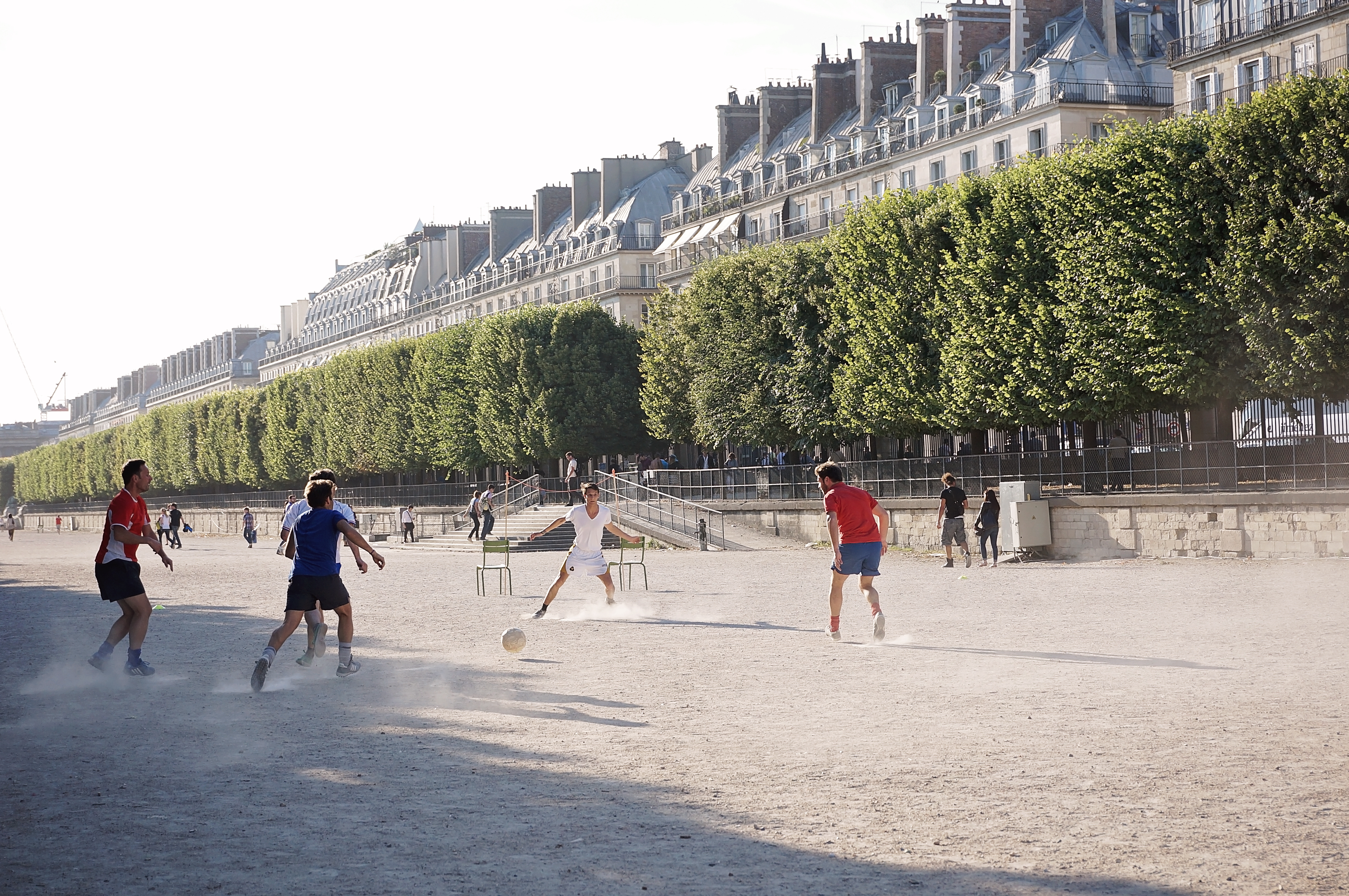 Because I can’t seem to get enough of Paris’ magnificent gardens, we walked along Rue Rivoli past many street vendors selling trinkets and postcards of Paris to get to the Jardin Tuileries. The garden was filled with people playing soccer and other games as well as people lounging and enjoying the beautiful day.