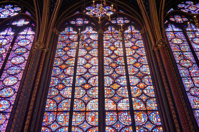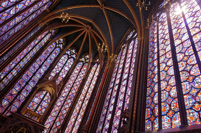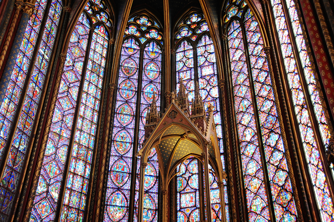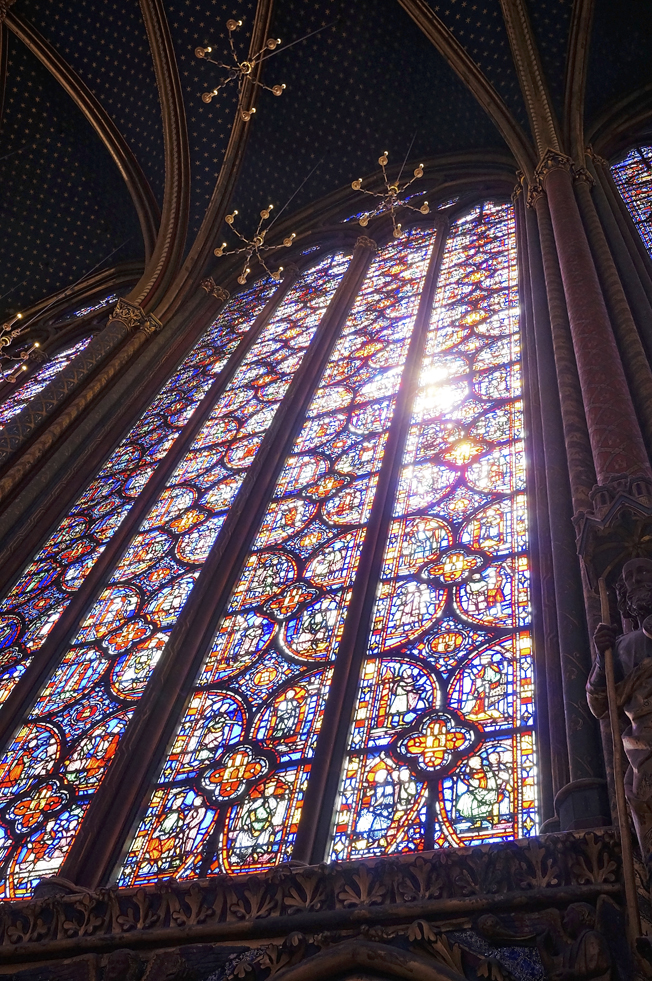 My absolute favorite church that Ive been to is Sainte Chapelle, located on Île de la Cité in the heart of Paris. The church isn’t very big nor grand from the outside, but the beauty is all in the details. Its quite interesting really. There are five different colors; red, yellow, green, blue and purple. They first make a template with paper then cut the glass to the specification of the template. From there, they piece together the square sections with lead and use steel rods to keep the glass from collapsing upon themselves. In order to create the faces and shadows they apply a mixture of iron and vinegar to paint the glass then bake it in. Each section contains over a hundred pieces of glass and there are hundreds of sections. The imagery goes around the room depicting various stories from the bible. What makes Sainte Chapelle so magically to me is the way that the sun shines through the colored glass reflecting all around the room. I walked from one end of the church to the other with my eye on the sun and it was as though I’ve disembarked on a dream where seemly hundreds of colors were dancing and swaying about and I was a lucky witness to this beauty. I apologize but the photos don’t even begin to do this place justice.