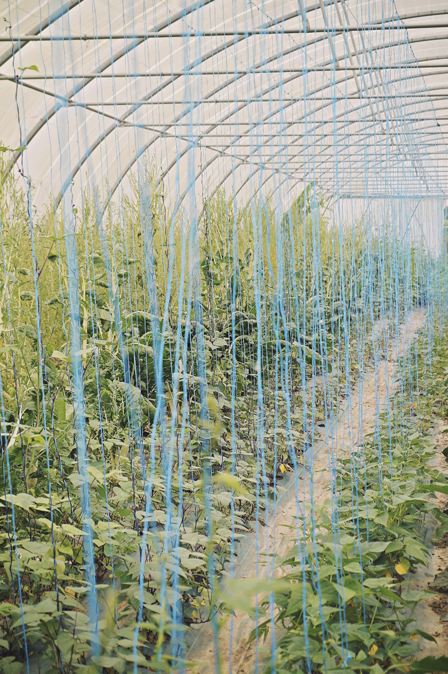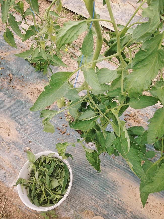 - Day 4: We left the house around 8 had a little coffee and it was off to work. I picked weeds around the peppers then feed them. Harry watered the tomatoes, making sure not to get water on the leaves because that will cause them to develop mushrooms on the leaves. We then hung strings from the bars of the greenhouse and fastened them to the cucumbers to help the stand and grow. Once the cucumbers were done, we tended to the tomatoes, pitching the pit and wrapping them around the strings to help them not fall over. By the time we were done with the tomatoes, our hands were caked green and gnarly looking like a villain from some comic book. We gathered the eggs and headed home. It was an easy day and I enjoyed helping the plants.