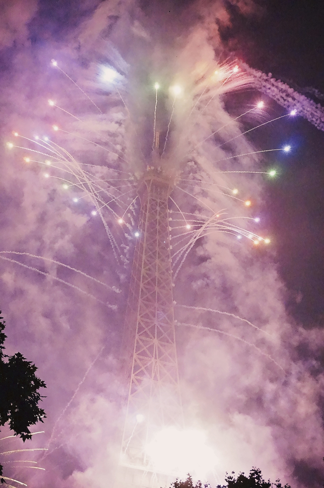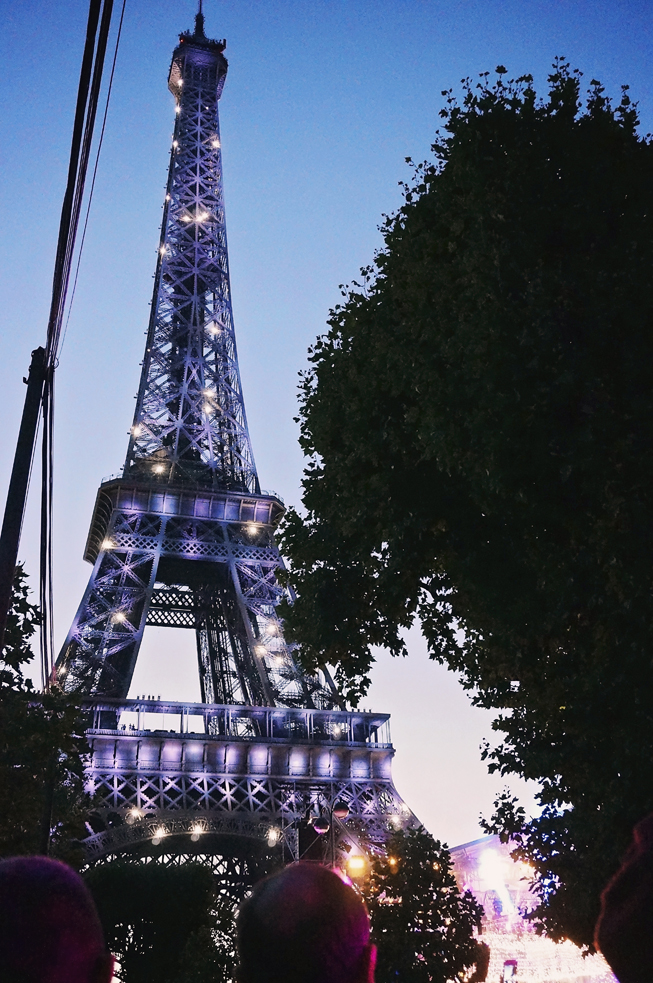 Walking through the Tuileries Garden was quite a festive scene. There is a small fair of sorts set up every year during the summer and it was in full swing. After a few pics and some ice cream we walked on. Lance and I grabbed one of the few last spots of grass available on the Champ de Mars and waited for the free concert performed by the Orchestre National de France and the Choeur et la Maitrise de Radio France to start. I didn’t understand a word of what they were singing but it was beautiful nonetheless. At 11pm the most incredible fireworks were fired from the Trocadero, this year the theme was War and Peace to commemorate the 100th anniversary of World War 1. The firework show lasted a magnificent 35 minutes. In the mist of the loud booming of the fireworks, John Lennon’s Imagine played over the stereo and I was floored. It truly was a magical moment for me, here I was in Paris on Bastille Day with the Eiffel Tower before me lighted with the colors of the rainbow and fireworks of the same and my favorite song plays and everyone starts singing along. Wow!